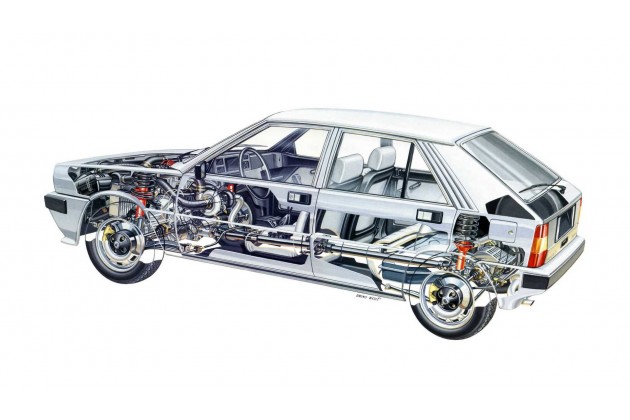 Der 1.6-Motor wurde durch den 2.0-Motor mit Kraftstoffeinspritzung des Lancia Thema ersetzt. Zusammen mit einem Garrett T3-Turbo und Overboost-Funktion mit Wastegate-Ventil. Bei starker Beschleunigung kann so der Druck vorübergehend erhöht und das Drehmoment auf 285 Nm bei 2.500 U/min gesteigert werden. Das Allradgetriebe verfügt über eine zentrale Spreizung mit Viskokupplung sowie ein selbstsperrendes Torsen-Hinterachsdifferenzial. An der Vorderachse kommen 56 Prozent der Motorleistung an, hinten sind es 44 Prozent.