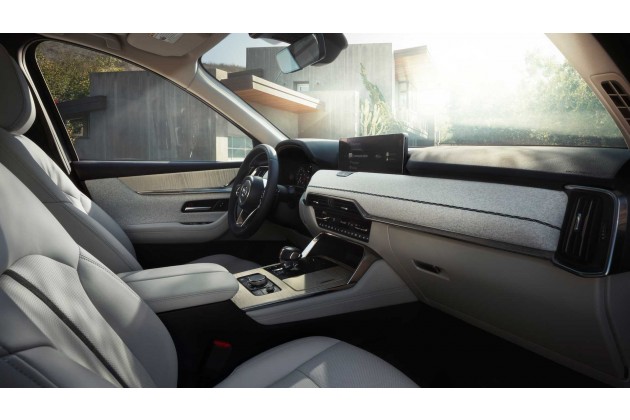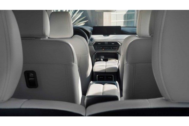 Während der Antriebsstrang eine Verbindung zu ambitionierten Piloten sucht, hofft Mazda, dass das schicke Interieur des CX-90 auch die Passagiere anspricht. Ein 12,3-Zoll-Infotainment-Bildschirm in der Mitte des Armaturenbretts wird durch eine Reihe von analogen Bedienelementen ergänzt, mit denen sich häufig genutzte Funktionen wie Sitze und Klimaanlage steuern lassen.
