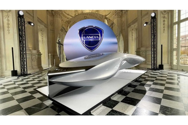 Die Bilder oben zeigen die erwähnte Skulptur Pu+Ra Zero vom November 2022. Pu+Ra steht für "Pure" und "Radical". Damals wurde neben dem neuen Lancia-Schriftzug auch ein neues Logo enthüllt, das drei Elemente miteinander vereint: eine Lanica-Flagge, eine Lanze (italienisch lancia) und ein Kreis als Symbol für das Lenkrad.