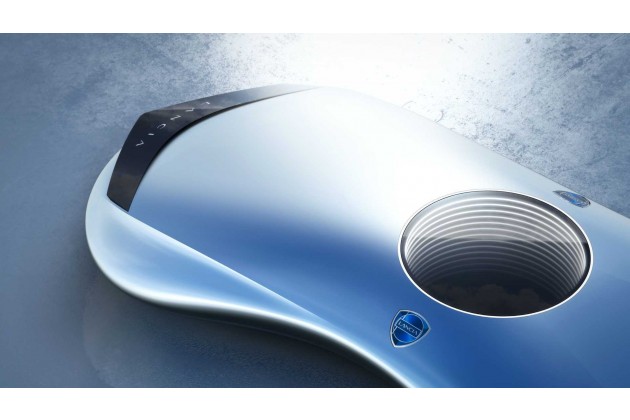 Das andere Teaserbild zeigt das Auto von oben. Auf dem Dach ist ein mysteriöser weißer Kreis zu sehen, den auch die Skulptur besaß. Laut Lancia handelt es sich um ein "innovatives, abgerundetes Dach, das einen Panoramablick gewährt und das natürliche Licht optimal nutzt" - offenbar also ein Glasdach. Außerdem sind Linien, die sich von der Heckscheibe um die Ecke herum auf die Seite des Wagens ziehen. Laut Lancia erinnern diese an den Lancia Beta HPE aus den 70er-Jahren. Die Karosseriefuge auf dem Bild legt nahe, dass es sich um einen Zwei- oder Dreitürer handelt.