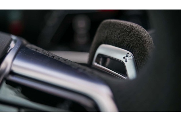 Dazu gehören auch Qualität und Verarbeitung im Interieur. Die sind auf monströs hohem Niveau und machen das Auto wirklich besonderer. Alcantara - sorry, "Dynamica" - findet sich wirklich überall. Am kompletten Einstieg vorne und hinten, an den Sitzkonsolen und VOR ALLEM auf den Schaltpaddles. Nein, wirklich. Man kennt das ja: Immer diese kalten Finger bei ambitionierten Schaltvorgängen. Irgendjemand musste dieses drängende Thema endlich angehen. Aber im Ernst, es fühlt sich großartig an. Genau wie das - leider nach wie vor abgeflachte - Eigen-Lenkrad mit seiner sehr detailverliebt gearbeiteten 12-Uhr-Markierung.