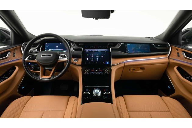 Jeep beschreibt das Interieur wie folgt: "Der luxuriöse Innenraum der fünften Jeep Grand Cherokee-Generation verwöhnt mit handgefertigten Materialien und modernen Annehmlichkeiten." Stimmt. Aber nur teilweise. Fakt ist, dass der amerikanische Hersteller jetzt deutlich mehr aus dem großzügigeren Inneren herausholt und auch deutlich mehr hineinsteckt.