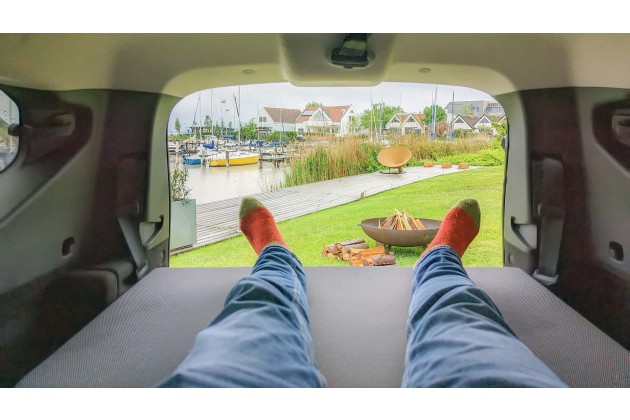 Soweit die Theorie. Wie funktioniert die Chose in der Praxis? Sie können es in der Bildergalerie am Anfang des Artikels ausführlich sehen. Also: Hintere Türen öffnen. Lehnen der Vordersitze nach vorne klappen, soweit möglich. Auf diesen die noch gefaltete Matratze ablegen.