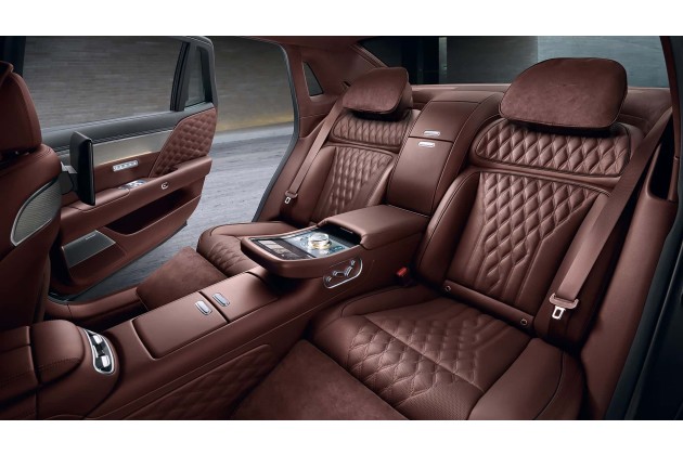 Die Premium-Sparte von Hyundai will den G90 in Europa mit zwei Radständen anbieten, wobei der SWB vier oder fünf Sitze haben wird, während der LWB ausschließlich als Viersitzer erhältlich sein wird. Die Luxusvariante erhält beheizbare und belüftete Einzelsitze im Fond mit Massagefunktion sowie Bein- und Fußstützen. Im Vergleich zum SWB bietet die verlängerte Variante 190 Millimeter mehr Beinfreiheit für die Passagiere im Fond.