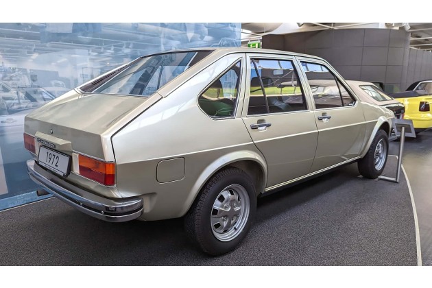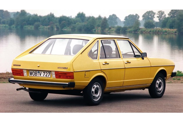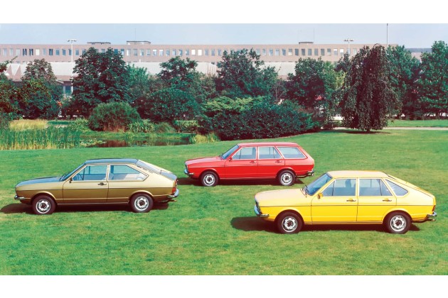 Im Mai 1973 debütiert der Passat zunächst als zwei- und viertürige Fließhecklimousine mit kleiner Heckklappe ohne Durchlademöglichkeit - die angestrebte Variante mit großer, bis zum Dach reichender Heckklappe unter Einbeziehung der Heckscheibe ist erst ab Januar 1975 serienreif. Die Torsionskurbel-Hinterachse wurde speziell für den Passat entwickelt.