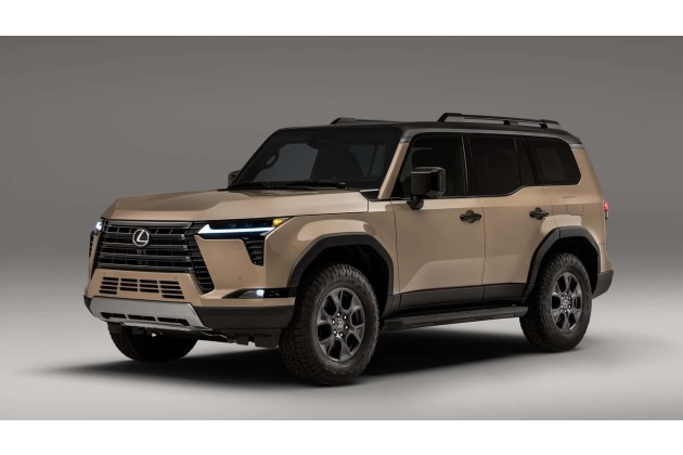 Der Teaser hilft, einige klare Unterschiede zwischen dem Toyota Land Cruiser und dem neuen Lexus GX zu erkennen. Die hochgezogene Gürtellinie des Land Cruiser und die aufrecht stehende Windschutzscheibe sind eindeutige Indikatoren dafür, dass die beiden wahrscheinlich eine gemeinsame Plattform und Karosseriestruktur haben werden. Allerdings passt die bulligere Frontpartie des Toyota besser zu seiner Zielgruppe als die kantigen Scheinwerfer und der Kühlergrill mit Spindelmotiv des Lexus.