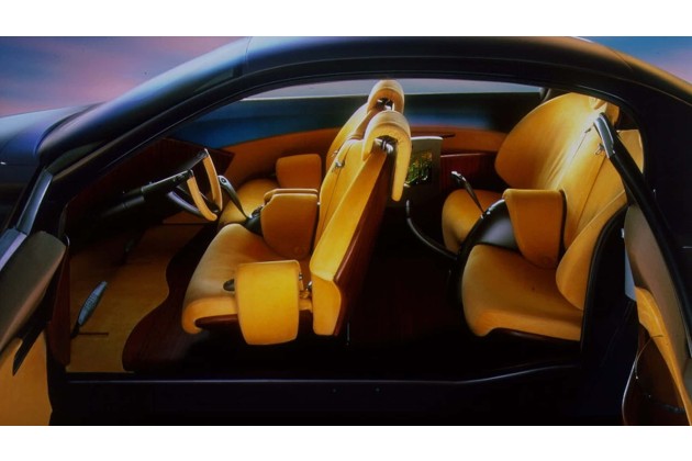 Die Polsterung des Dialogos bestand aus einer Kombination aus Nubuk, Seide oder Kaschmir und interessanterweise konnten die Vordersitze um 180 Grad gedreht werden, so dass eine Lounge-Konfiguration entstand. Es gab kein Lenkrad, sondern eine Art "Joystick", der von rechts nach links bewegt werden konnte.