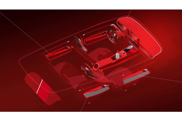 Und so ist es nicht gerade verwunderlich, dass auch im digitalen Innenraum einiges an die 1970er erinnert. Wir entdecken sofort Stoffsitze mit Karo-Muster und ein GTI-Lenkrad mit beleuchteter 12-Uhr-Markierung. Das Dreispeichenlenkrad des ID. GTI Concept ist zudem mit einem etwas tieferliegenden Airbag ausgestattet, der die optische Brücke zum Pralltopf des ersten Golf GTI herstellt.