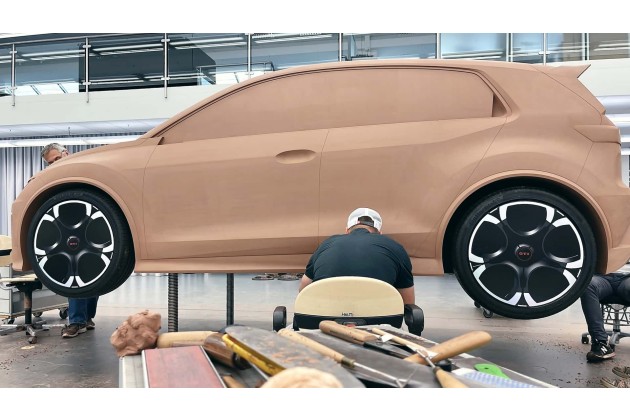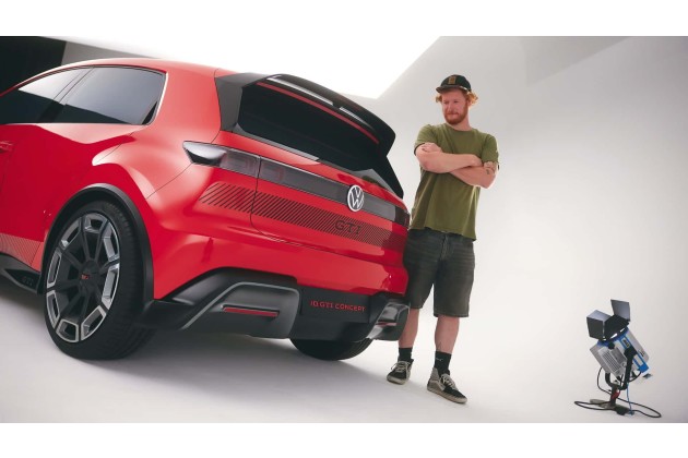 Und weil Intelligenz vor allem im Innenraum stattfindet, steigen wir jetzt mal ein. Dachten wir uns zumindest. Aber das ID. GTI Concept ist lediglich ein Clay-Modell. Also eine Hülle aus Ton, die dann lackiert wurde. Interieur zum Anfassen? Ist nicht. Hier liefert VW nur digitale Vorstellungen der Zukunft und kann deshalb so richtig auf die Visionen-Kacke hauen. Aber ohne die Vergangenheit aus den Augen zu verlieren. Man will ja schließlich nicht nur die Gen Z als künftige Leasing-Kundschaft gewinnen, sondern auch dem finanzstarken Boomer neue Elektro-GTIs zum Barkauf anbieten.