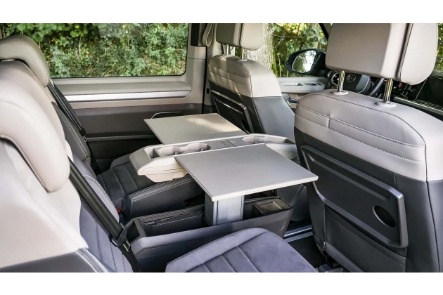 Gleiches gilt für den extrem praktischen Multifunktions-Tresen in der Mitte. Er dient als Doppeltisch, Armlehne, 1,5-Liter-Flaschen-Halter (2 Stück) und Ablage für Kleinkram. Höhenverstellbar ist er auch. Besser geht nicht. Insgesamt 4 USB-C-Anschlüsse und ein 12-Volt-Stecker schaden natürlich auch nicht. Dass die Materialien im Interieur allenfalls guter Durschnitt sind, ist da fast schon geschenkt.