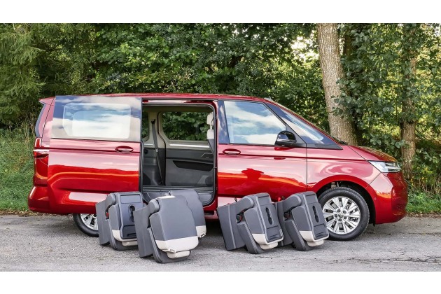 Der große Nachteil ist: Sie sind unglaublich klein und schmal. Alles, was ausladender ist als ein Siebt- oder Achtklässler, sitzt wie der vielzitierte Affe auf dem Schleifstein. Das ist im Prinzip absoluter Wahnsinn. Vor allem wenn man sich im Vergleich mal das Mobiliar in einem T6.1 ansieht. Oder noch besser: Die Business-Class-Captain-Chairs inklusive ausfahrbarer Beinstütze im Hyundai Staria.