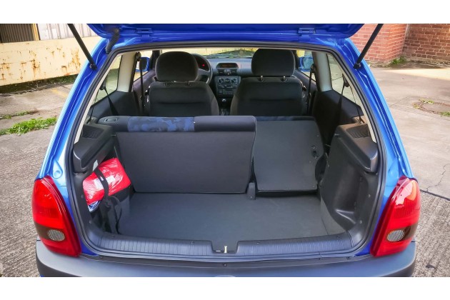 In der Mittelkonsole wird in unserem Testwagen dann aber ein regelrechtes Technik-Feuerwerk gezündet. Die Lüftungsregelung (ohne Klimaanlage) wird über drei Drehknöpfe und einen Schieberegler gesteuert, darunter sitzt das Radio. In unserem Fall ein damals für Kleinwagen ziemlich unübliches (und natürlich aufpreispflichtiges) Phillips CCRT 700 mit Telefonfunktion und dem damit in Verbindung stehenden großen Digitaldisplay auf dem Armaturenbrett. Glasklarer Radioempfang inklusive. So geht Kleinwagen-Komfort.