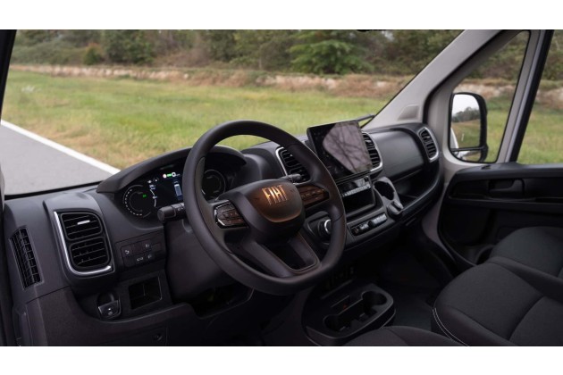 Zusätzlich zu diesen serienmäßigen Ausstattungsmerkmalen bietet der neue E-Ducato folgende Inhalte, die das Arbeitsleben von Berufstätigen verbessern und ihr Fahrerlebnis bereichern sollen: kabelloses Ladegerät; Dual USB A + C zum Aufladen von Smartphones; eine 230-Volt-Hochspannungssteckdose, die sich zentral auf dem Armaturenbrett befindet und von allen Insassen der Vordersitze leicht erkannt werden kann.