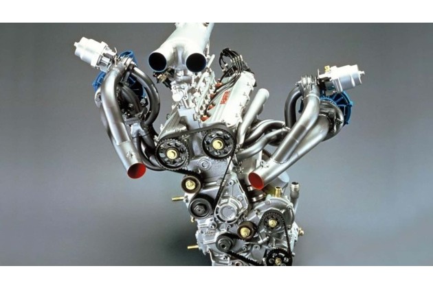 Doch damit nicht genug: Um die beiden Turbos einbauen zu können, wurde der Kopf mit vier Ventilen pro Zylinder nach einem Cross-Flow-Muster umgestaltet. Das bedeutet, dass sowohl die Einlass- als auch die Auslassventile der Zylinder nicht auf der gleichen Seite, sondern abwechselnd angeordnet waren. Dies ermöglichte dem Motor eine homogene Temperatur, eine gleichmäßigere Ausdehnung der Werkstoffe und erlaubte eine höhere Verdichtung und einen höheren Turbodruck und erzeugte günstige Turbulenzen in den Brennkammern.
