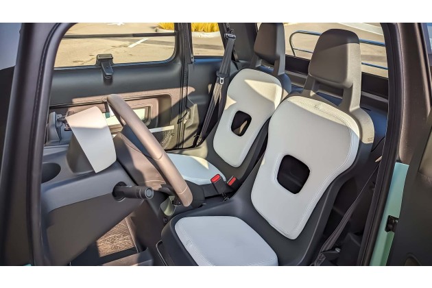 Natürlich dominiert im Innenraum Hartplastik, alles ist schlicht und gefühlt abwaschbar. Einen Kofferraum gibt es nicht, Gepäck muss auf der Beifahrerseite verstaut werden. Oder sofern dieser mitfährt, in dessen Fußraum.