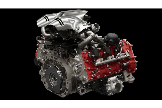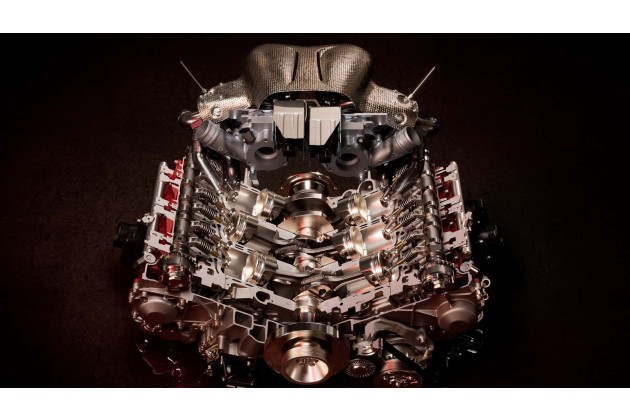 Der aus Aluminium und Leichtbaumaterialien gefertigte Motor verfügt über zwei Nockenwellen pro Zylinderbank mit Phasenschiebern und vier Ventilen pro Zylinder und leistet je nach Modell zwischen 600 und 700 PS.