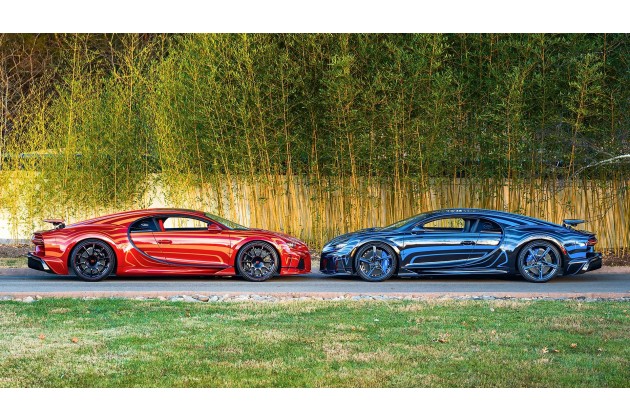 Bereits einen Bugati Chiron Super Sport zu besitzen, ist schon sehr exklusiv. Aber es geht noch elitärer, nämlich als Ehepartner JEWEILS einen Chiron Super Sport zu besitzen. Preis pro Exemplar: geschätzt 3,8 Millionen Euro. Mindestens. Denn bei diesen beiden Autos kam eine besondere Lackierung hinzu.