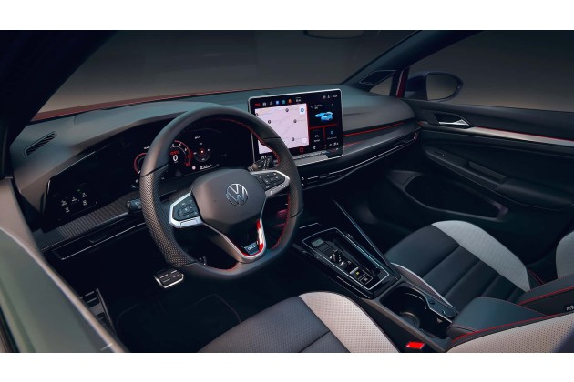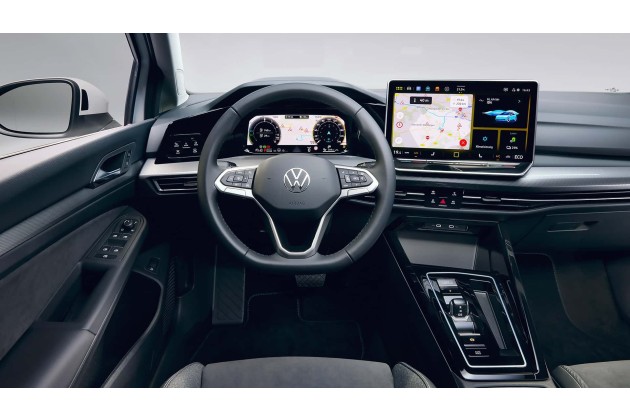 Das digitale Kombiinstrument ist serienmäßig 10,2 Zoll groß und man kann verschiedene grafische Grundkonfigurationen abrufen. Vier Ansichten sind verfügbar: "Classic", "Progressive", "Navigation" und "R-Line" (zusätzlich zu den modellspezifischen Ansichten "GTI", "GTE" und "R"). Das Head-Up-Display bleibt eine aufpreispflichtige Option.