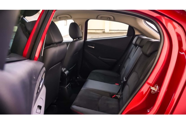 Kleinwagen-Format also. Das aber noch immer ansehnlich, zumal im Mazda-typischen "Soul Red Crystal" (leider saftige 1.000 Euro extra). Fast wirkt der 2 wie ein geschrumpfter 6, was ausdrücklich als Lob zu betrachten ist. Fußraum hinten und Kofferraum? Nicht gigantisch, aber vollkommen ausreichend. 280 Liter sind es im Normalzustand, etwas störend ist die hohe Ladekante. Vor allem aber der Griff unter die Heckklappe, um selbige zu öffnen. Besitzer eines Renault Clio kennen das Problem.