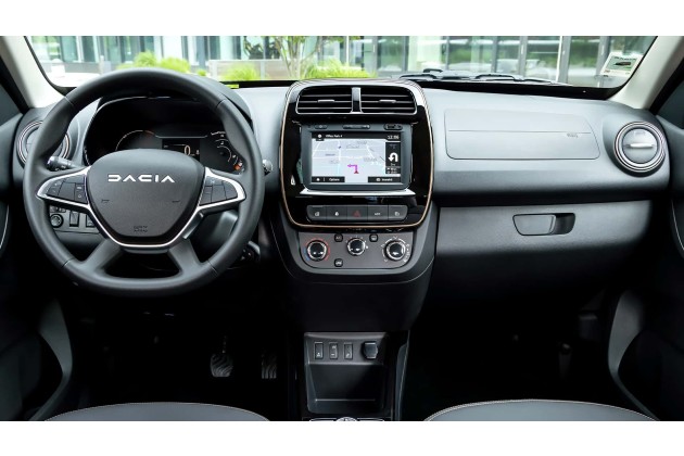 Auch im Cockpit könnte man meinen, in einem komplett neuen Auto zu sitzen. Wirkte der bisherige Innenraum in jeder Hinsicht billig, gibt sich der Dacia Spring künftig viel stimmiger und digitaler. verfügt nun in allen Versionen über ein individuell gestaltbares, digitales 7-Zoll-Display und einem großen 10-Zoll-Multimedia-Display in der Mitte des Fahrzeugs in den höheren Ausstattungsversionen.