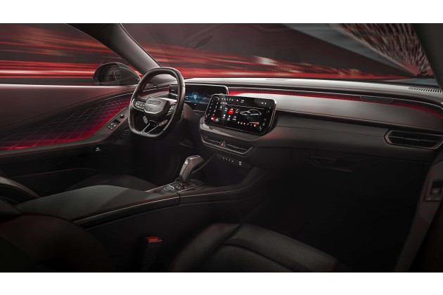 Mit 5,25 Meter Länge ist das Auto ähnlich groß wie die auslaufende Verbrenner-Version. Wie der Radstand (3.074 mm) liegt sie eigentlich schon über den Maximalwerten von STLA Large. Die Bodenfreiheit liegt mit 14 cm am unteren Ende der Möglichkeiten. Mit einer Karosseriehöhe von nur 1,50 Meter ist der Charger eindeutig eine Limousine, die es in einer zwei- und einer viertürigen Version geben wird. Dazu kommt eine große Heckklappe, die einen 644 Liter großen Kofferraum erschließt; bei umgeklappten Rücksitzen sind es 1.059 Liter. Außerdem gibt es noch einen 42 Liter großen Frunk.