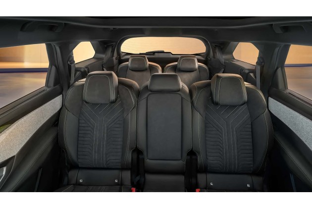 Dank des großen Radstands passen drei Sitzreihen in den Peugeot E-5008; die zwei Zusatzsitze für die dritte Reihe sind schon ab der Basisversion Allure serienmäßig an Bord - als Fünfsitzer gibt es das Auto offenbar nicht.