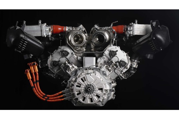 Werte, die zwar nicht ganz das Niveau des WEC-Hypercars SC63 erreichen, für einen straßenzugelassenen Supersportler jedoch beachtlich sind. Einschließlich des Spitzendrehmoments von 730 Nm, das zwischen 4.000 und 7.000 U/min konstant anliegen soll. Diese Werte sind auch dank der Integration des Elektromotors möglich.