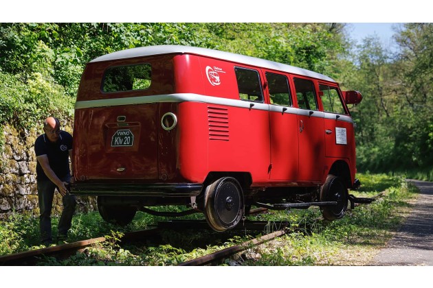 Ein VW T1 Draisinen-Bulli rollt gemächlich von links nach rechts an Ihnen vorbei. Die vorangegangene Ungeduld löst sich in Wohlgefallen auf. Auch Ihre Mundwinkel werden sich zu einem Schmunzeln formen - oder etwa nicht? Ein T1 sorgt schon in freier Wildbahn für ein unmittelbares wohlig warmes Gefühl. Doch auf der Schiene? Eher außergewöhnlich.