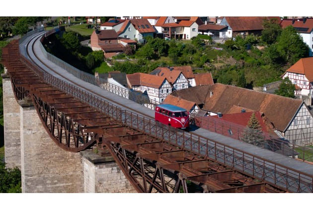 "Es gibt nicht viele Varianten des Bulli, die wir bisher noch nicht gesehen haben oder gefahren sind - diese Draisine gehört eindeutig dazu. Darum war es für uns ein sehr emotionaler Moment, als wir mit dem Team das erste Mal über das 24 Meter hohe Viadukt gefahren sind.