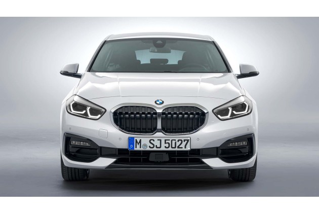 Insgesamt wirkt der 1er künftig frontal weit weniger wuchtig und eleganter als sein Vorgänger. Spötter könnten sagen: Schwer ist das auch nicht. Deutlich erkennbar sind die jetzt schmaleren Scheinwerfer. Serienmäßig ist LED-Technik, adaptive LED-Scheinwerfer mit blendfreiem Matrix-Fernlicht, Abbiegelicht und blauen Akzenten sind als Sonderausstattung erhältlich.