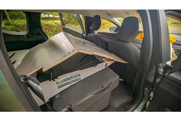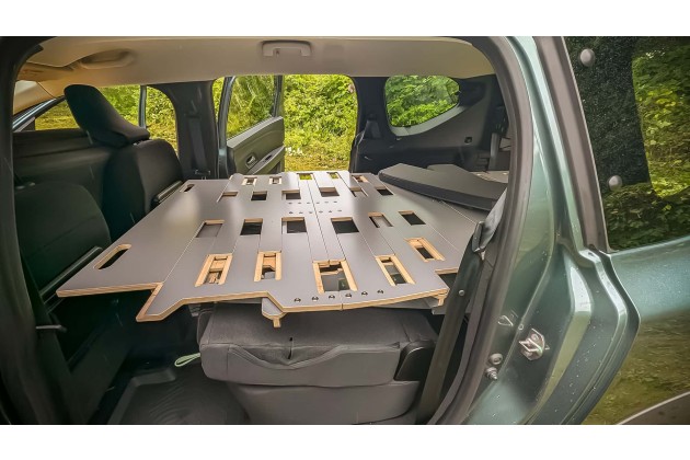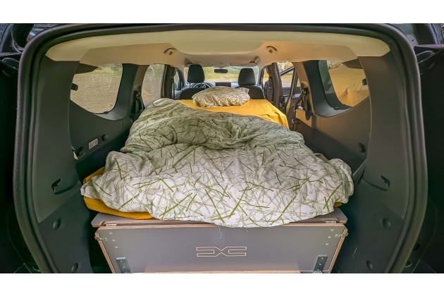 Jetzt stand er erneut vor der Tür in der Extreme-Ausstattung als Siebensitzer mit dem 1,6-Liter-Full-Hybrid. Das, worum es heute geht, schlummert jedoch im Heck. Eine unscheinbare 45-Kilo-Holzkiste, die in ein paar Handgriffen zum Bett im Kofferraum des Joggers wird. 1,90 Meter lang, einen Meter breit - im Fond werden einem sogar 1,30 Meter gegönnt. Für Menschen mit breiten Schultern sicher gut zu wissen.