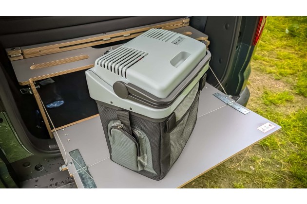 Mit dieser "Sleep Pack" genannten Kiste und weiterem Zubehör aus Verdunklungsrollos, dem Dachkoffer, dem Heckzelt und der Kühlbox kostet der gesamte Campingspaß gut 3.000 Euro Aufpreis. Damit liegt der hier gezeigte Testwagen bei über 30.000 Euro. Wenn Sie wirklich auf der Suche nach einem vollwertigen Camper in dieser Preisregion sind, hören Sie genau hier auf zu lesen. Der Gebrauchtwagenmarkt ist ihr Freund. Da wird sich sicher ein guter Kastenwagen-Camper finden.
