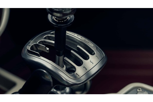 Es handelt sich um ein Dogleg-Getriebe, d. h. der erste Gang liegt unten und auf der linken Seite. Diese Anordnung erinnert natürlich an klassische Rennwagen, ist aber auch ein Zugeständnis an die Siebengangschaltung selbst. Jede Schaltung hat einen klobigen, gummiartigen Widerstand und ein Paar ausgeprägte Rasten zwischen den Gängen.