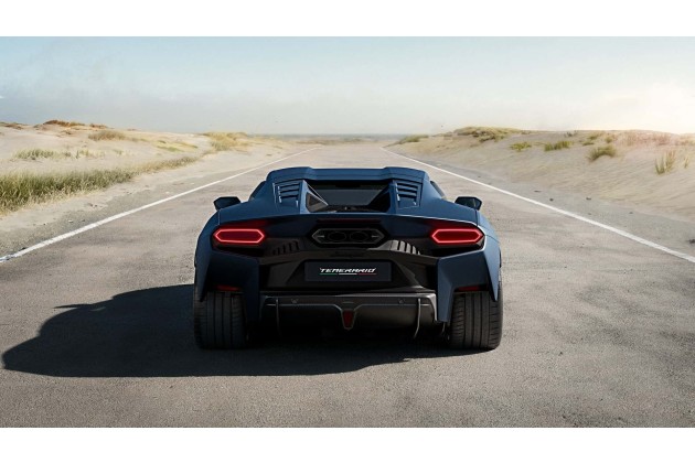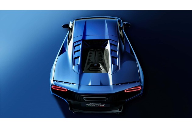 Das Heck ist stärker bearbeitet und ziemlich offenherzig, um mechanische Elemente wie Reifen oder Kühler sichtbar zu lassen, was ein wenig an Motorräder erinnert. Von hinten gesehen sind die Seiten des Temerario senkrecht und geben der Karosserie viel visuelle Unterstützung, nicht zuletzt, weil die sechseckigen Rückleuchten separat sind und nicht durch ein Lichtband verbunden, wie es in letzter Zeit in Mode ist.