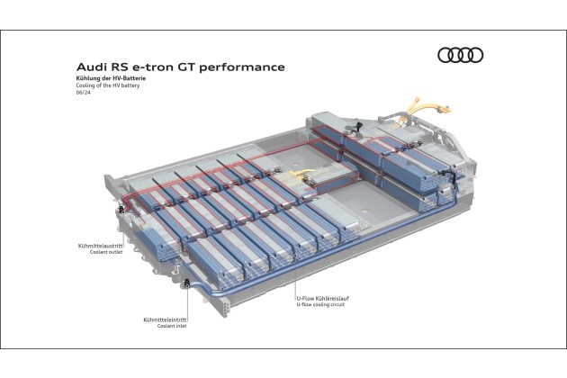 Generell sollen nun auch bei niedrigen Temperaturen hohe Ladeleistungen erreicht werden. Das liegt am optimierten Thermomanagement für die Batterie. Die Ingenieure erwähnen eine verbesserte Kühlplatte und optimierte Pumpen. Da ich weiß, dass der e-tron GT gleich vier Kühl- und Heizkreisläufe hat, womit unzählige verschiedene Modi möglich werden, verzichte ich darauf, mir das näher erklären zu lassen ...