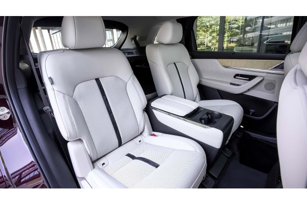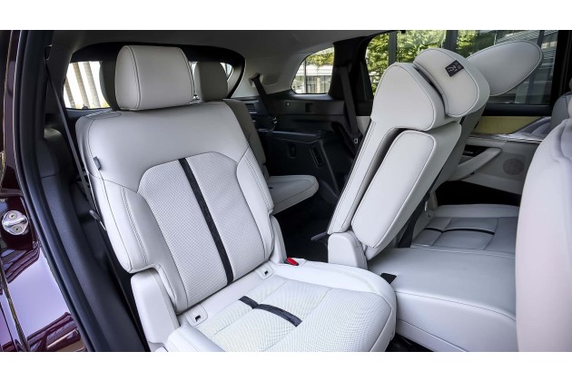 Sitze und Sitzposition in der Captains Lounge (also ganz vorne) machen einen sehr vernünftigen Eindruck. Da zwickte auch nach mehreren Stunden Fahrt nichts. Wir wandern eine Reihe weiter nach hinten und bewundern bei komplett zurückgefahrener Rückbank (der Verstellbereich beträgt 120 Millimeter) eine Beinfreiheit, der man ein eigenes Nummernschild geben sollte. Das ist also eher CX-120 oder sogar 140.