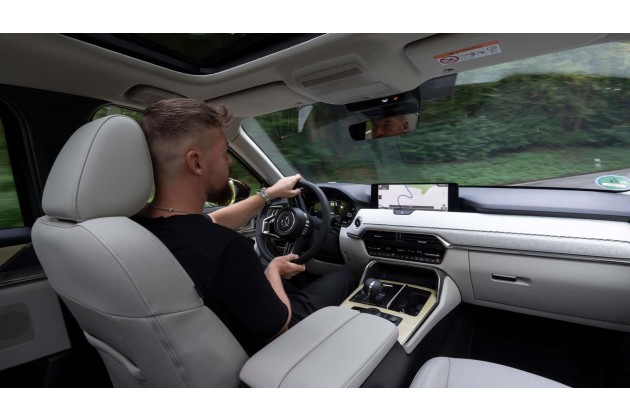 Auffällig beim CX-80: Die Fahreigenschaften von Diesel und Plug-in-Hybrid unterscheiden sich teils signifikant. Das wird sicher auch im Gewichtsunterschied begründet sein (der PHEV wiegt 110 Kilo mehr), aber der Selbstzünder fährt doch deutlich anders. Etwas fester und verbindlicher im Handling mit schwererer, noch sportlicherer Lenkung und seltsamerweise auch ein gutes Stück straffer gefedert.