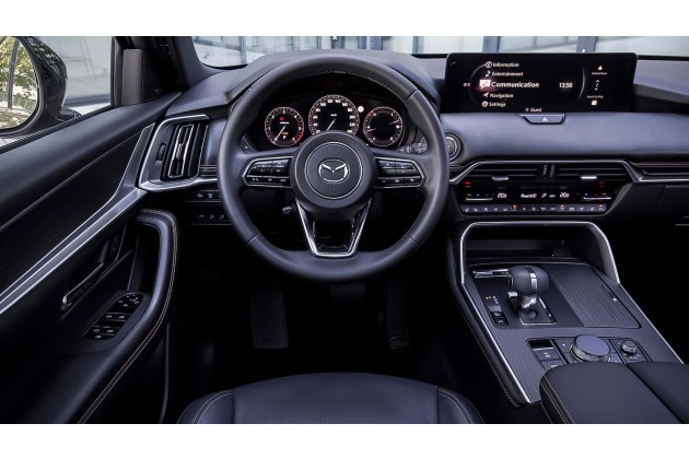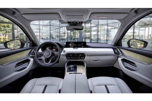 Auch die Antriebe sind bereits aus dem CX-60 bekannt. Der aktuellen Marktlage entsprechend rechnet Mazda für den 3,3-Liter-Reihensechszylinder-Diesel inklusive 48-Volt-Mildhybrid-System (254 PS, 550 Nm) mit einem Verkaufsanteil von 65 Prozent. Der 2,5-Liter-Vierzylinder-Plug-in-Hybrid (Systemleistung: 327 PS, 500 Nm) dürfte demnach 35 Prozent der Verkäufe ausmachen.