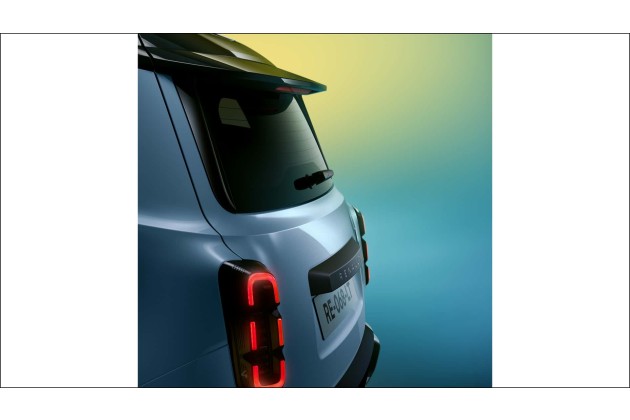 Wie beim originalen R4 sind die Rückleuchten senkrecht angeordnet, und wie dort sind sie dreiteilig - auch wenn sie nun mit moderner LED-Technik arbeiten und filigraner wirken als vor 60 Jahren. Ein glänzender schwarzer Rahmen gibt den Rückleuchten etwas Edles. Wie der Renault 5 hat auch der R4 einen Heckscheibenwischer und einen Dachspoiler; das Heck fällt aber deutlich senkrechter ab und die Ladekante liegt offenbar ähnlich tief wie beim Original.