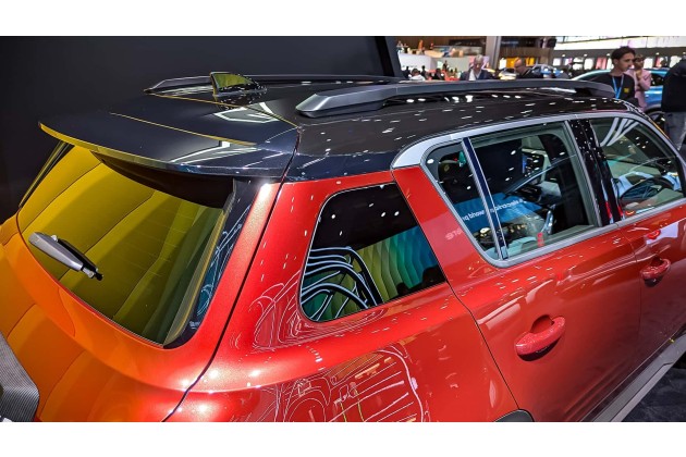 Die aus einem einzigen, 1,45 Meter langen Stück gefertigte Frontpartie ist laut Renault eine Weltneuheit in der Automobilindustrie. Es soll aber möglich sein, nur das Polycarbonat-Glas auszutauschen, ohne am Kühlergrill oder den Scheinwerfern Arbeiten vornehmen zu müssen.