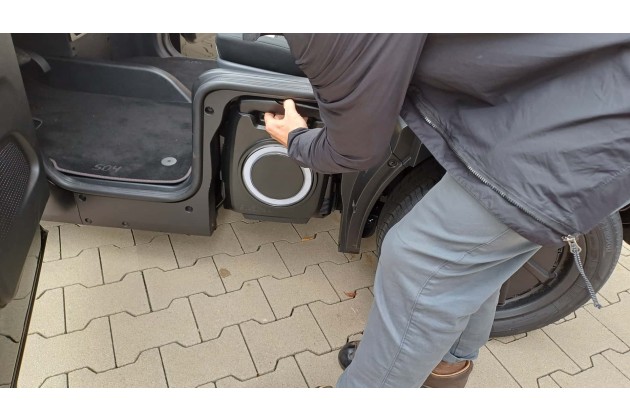 Wegen der geringen Breite von nur 1,28 m ist der Silence S04 höher als breit, was der Autofahrerin oder dem Autofahrer von vornherein ein mulmiges Gefühl gibt. Als ich das Ding an der Nissan-Zentrale in Wesseling bei Köln zum ersten Mal live sehe, rüttele ich denn auch mal am Dach, um zu sehen, wie stabil das Nanocar auf den Rädern steht. Er lässt sich leicht bewegen, schwankt aber nicht zu sehr. Also Entwarnung.
