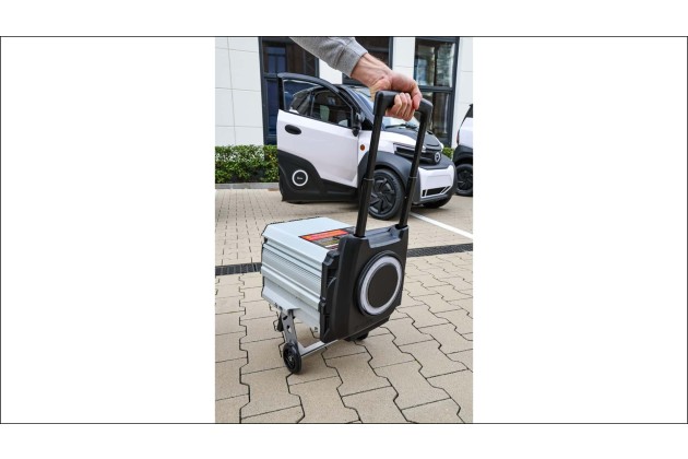 Die 41 Kilo schweren Akkus kann ich als Schreibtischarbeiter nicht heben, aber Gott sei Dank kann man sie mit einem kleinen Wägelchen herumziehen. Zum Aufladen müsste ich sie entweder eine kleine Stufe zur Haustür heraufziehen oder drei Türen nacheinander passieren. Dann ginge es in den Aufzug hoch in den sechsten Stock. Dort würde ich das Ding anschließen, und den zweiten Akku holen. Und das alles jede Woche. Aber vielleicht ist die Lage bei Ihnen ja günstiger. Einfacher ginge es sicher mit einer Batteriewechselstation.