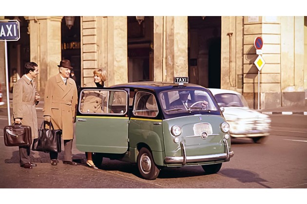 Mit diesem Konzept ist der viertürige Fiat 600 Multipla die erste Großraumlimousine der Welt und der Urahn aller heutigen Minivans. Karriere macht der Fiat 600 Multipla als Shuttle-Fahrzeug, viele leisten im Gästeservice von Hotels oder bei Taxi-Unternehmen Dienst. Als Kleintransporter Fiat 600T wird er zum treuen Helfer unzähliger Handwerker. Rund 77.000 Exemplare werden zwischen 1956 und 1960 gebaut.