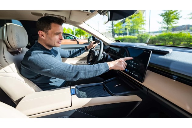 Innen empfängt der Lynk & Co 08 seine Passagiere mit einem Mix aus modernster Technik und wohnlichem Ambiente. Dreh- und Angelpunkt im Cockpit sind zwei große Bildschirme: Ein 10,2 Zoll großes Fahrerdisplay liefert wichtige Fahrinformationen - allerdings in Miniaturschrift, während ein riesiger, 15,4 Zoll messender Touchscreen in der Mittelkonsole für Infotainment und Fahrzeugeinstellungen zuständig ist. Ob und wie das funktioniert? Später mehr.