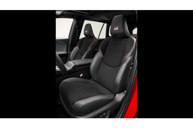 Im Innenraum setzt Toyota GR-typisch auf eine schwarze Ausstattung mit GR-Logos und roten Akzenten - unter anderem am Lenkrad, an den Kniepolstern sowie an den Kunstleder- und Wildledersitzen. Mehr Leistung spendieren die Japaner dem RAV4 GR Sport hingegen nicht.