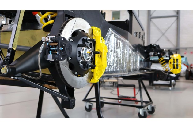 Ist das Chassis komplett, wandern nach und nach Bremsleitungen, Fahrwerk, Kabelbaum, Motor, Innenausstattung und Karosserieteile an jeden einzelnen F22 - natürlich per Hand. Ist eine Station fertig, rutscht der nächste von hinten nach. Zur Übersicht der einzelnen Arbeitsschritte hat Donkervoort jedem einzelnen Werksmitarbeiter eine Farbe zugeordnet, die nach dem entsprechenden Zusammenbau auf das Teil aufgetragen wird. Muss Rücksprache gehalten werden oder herrscht Unklarheit, weiß jeder, mit wem er sprechen muss.