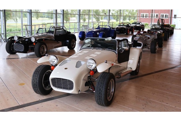 In der Eingangshalle angekommen, begrüßen einen zunächst frisch aufbereitete Donkervoort verschiedener Baujahre - der schnellste Weg, um an eines der Leichtgewichte zu kommen. Neue F22 sind hier nicht zu finden. Die neuste Serie war schon zum Start restlos ausverkauft, weshalb das Familienunternehmen auf 100 Exemplare aufstockte, inklusive der noch einmal um 34 Kilo leichteren Final-Five-Edition.