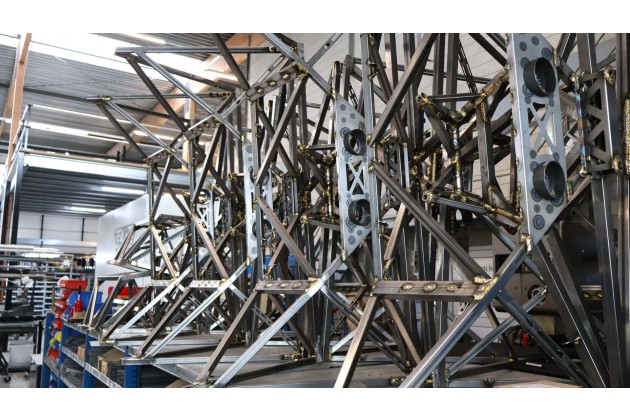 Gewicht wird hier in jedem Schritt eingespart. Das fängt schon beim Gitterrohrrahmen an, der durch ein spezielles Schweißverfahren mit weniger Temperatur nicht nur Material einspart, sondern dadurch auch Kilos - etwa die Hälfte zum herkömmlichen Schweißweg. Zudem gewinnt das Gerüst an Steifigkeit. Das Endergebnis ist tatsächlich faszinierend. In der herkömmlichen Industrie wird beim Schweißen dermaßen viel Material verbraten, dagegen wirkt Donkervoorts Weg wie ein feiner Pinselstrich von van Gogh.