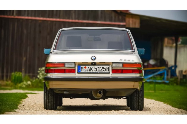 So weit also die Theorie. Wie sieht die Praxis des Jahres 2025 aus? Auf mich wartet bei BMW Classic ein überaus schicker 525e des Baujahrs 1985 in einem Hellgold-Metallic. Innen farblich passend abgestimmt. Damals lästerte so mancher, die Baureihe E28 sähe kaum anders aus als ihr Vorgänger. Heute hat das kantige Design mit dem Chrom zwischen den Heckleuchten seinen eigenen Charme. Kuriosum an Rande: Unser Fotograf wundert sich, warum der Auspuff fast mittig liegt. DAS frage ich mich schon seit meiner Kindheit ...