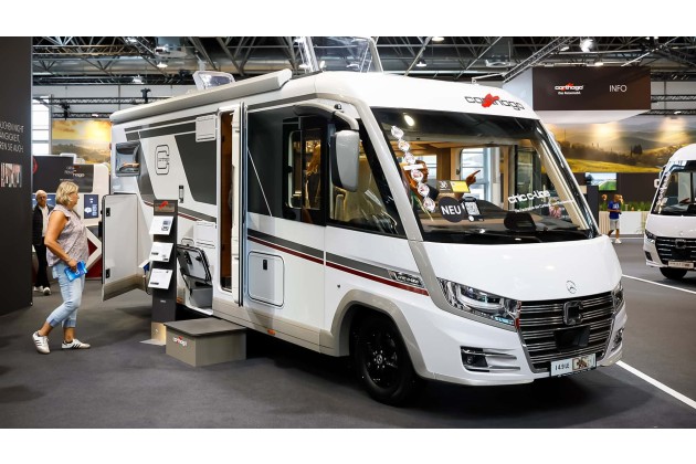 Der CV 600 SB zeigt sich mit Einzelbetten, die sich zu einer großen Liegefläche verbinden lassen. Fünf verschiedene Innenraumwelten - darunter die "Iconic"-Version mit dunklem Kunstleder - sorgen für Individualität. Das teilintegrierte Modell T-Base rollt mit neuem Grundriss an den Start. Preise: A-Base ab 61.999 Euro, der CV 600 SB liegt bei rund 56.000 Euro. Alles ab Werk - je nach Ausstattungspaket.